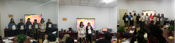 为感谢每一位曾在荟灵语言学研究中心和荟灵翻译研究中心2018年的常态研讨会上报告发言的老师,每一位主持过中心常态研讨会的老师和每一位在研究中心辛勤值班的志愿者同学,研究中心精心制作了智慧贡献证书、主持组织证书和志愿者证书。会议结束前,中心主任曹瑞斓教授邀请本次报告的中心研究人员方芳老师所在的我院研究生教学部的全体教师和刚从北京出差返回马鞍山还没回家就赶来中心参加研讨会的新聘副高级职称教师周家春副教授为相关师生颁发了证书。
