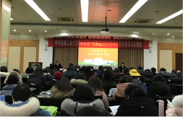 1月10日上午,外国语学院在佳山校区学术会议中心二楼报告厅召开2020年第二次全体教职工会议。学院领导及全体教职工参加会议,会议由院党委书记黄宇弦主持。