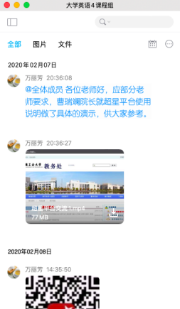 除此之外,学院领导也给予了大学英语4课程组很大的支持。院长曹瑞斓教授常常在群里对老师们的疑问进行解答,并录制平台的使用说明公开课供全校老师观摩;副院长陈琳教授也积极寻求出版社的帮助,解决了由于疫情原因导致老师缺少教材的燃眉之急。