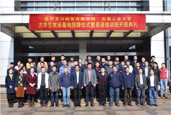 为进一步贯彻落实中央和国家关于做好大学生就业工作的精神,按照我校强化“四主”行动,推进就业创业工作走创新和内涵发展道路的工作部署,促进2017届毕业生充分和高质量就业,外国语学院坚持通过“走出去、请进来”,加大在外向型、服务型企业建立稳定的就业基地,畅通就业渠道。11月1日,校党委副书记陈润带领外国语学院的领导班子和学工部有关负责人,到扬州龙川钢管有限公司开展“安徽工业大学就业基地”建设活动。公司董事长马自强及公司领导团队和我校校友代表出席就业基地的建设、签约与授牌仪式。