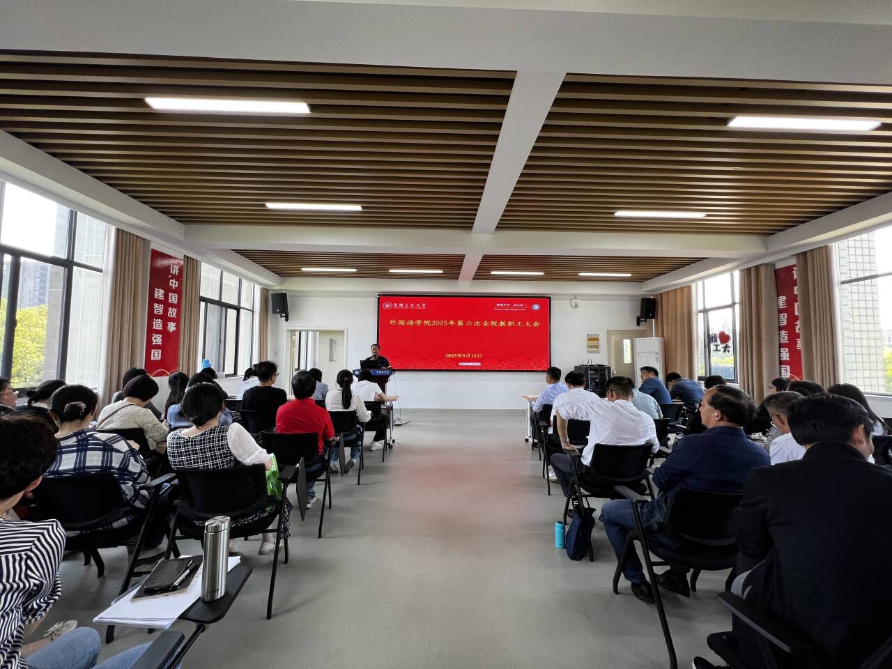 5月12日下午,外国语学院召开2025年第六次教职工大会,学院党政领导及全院教职员工参加会议。会议由学院党委书记王成勇主持。