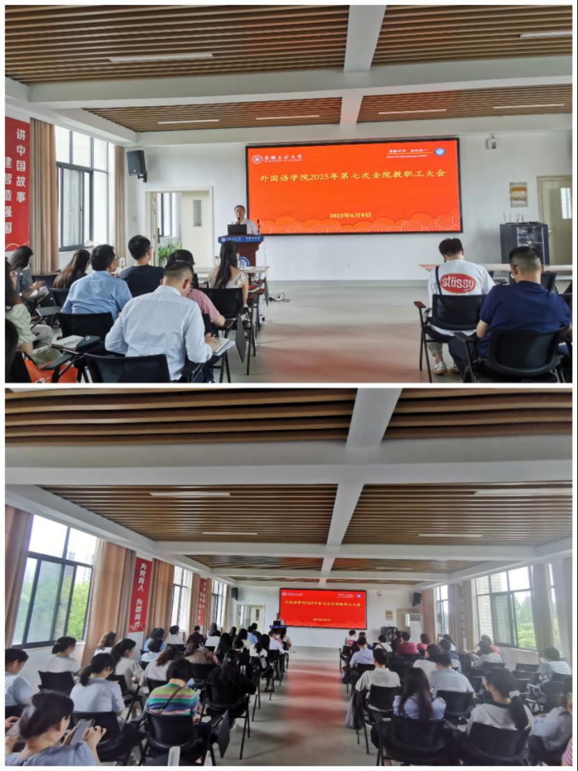 6月9日下午,外国语学院召开2025年第七次教职工大会,学院党政领导及全院教职员工参加会议。会议由学院党委书记王成勇主持。