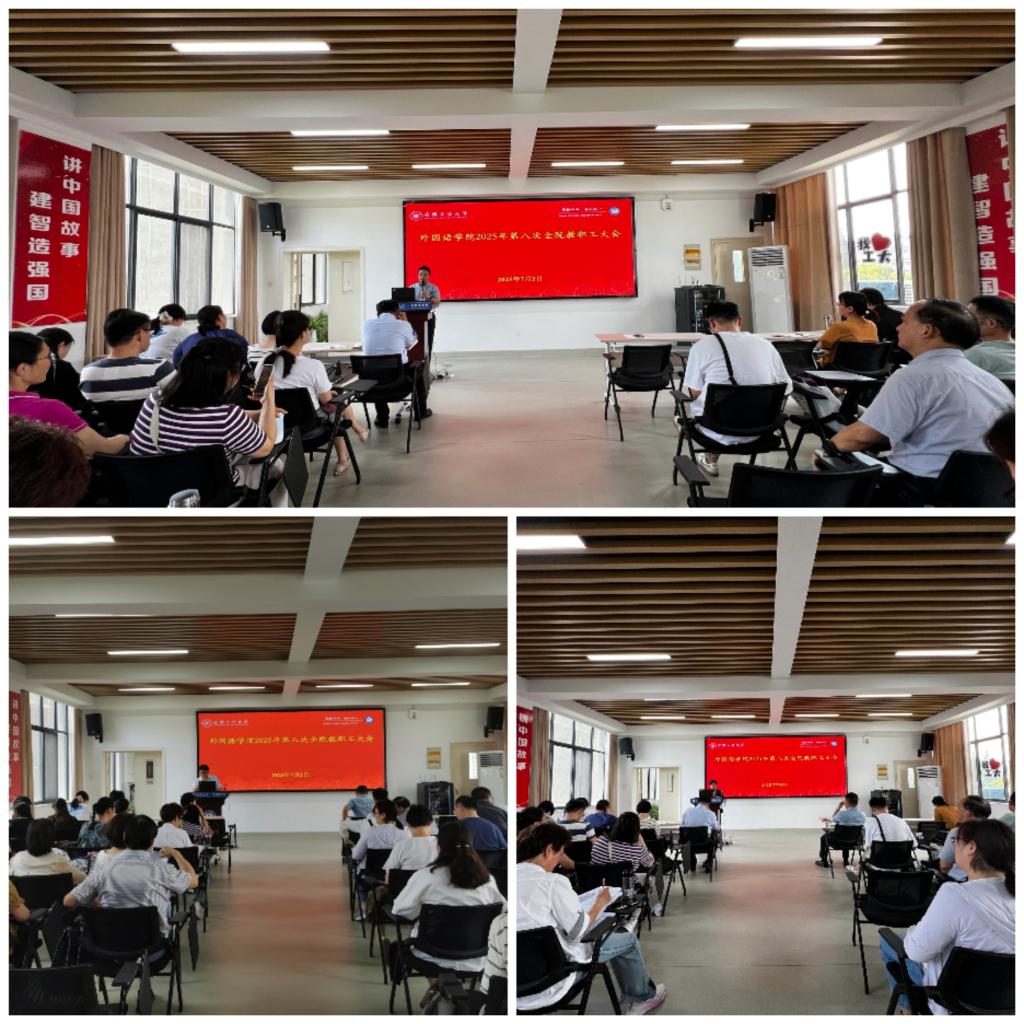 7月2日下午,外国语学院召开2025年第八次教职工大会,全院教职员工参加会议。会议由学院党委副书记、纪委书记、副院长施铜兴主持。