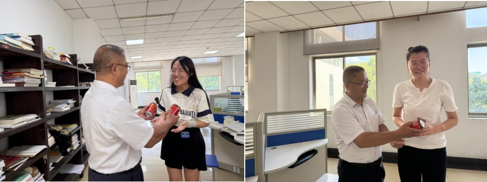 慰问过程中,学院领导还将精心准备的“清凉礼包”一一发放给留校学生。在炎炎夏日和备考关键阶段,这份关怀既为同学们送去了清凉,也让他们深切感受到学院的温暖。