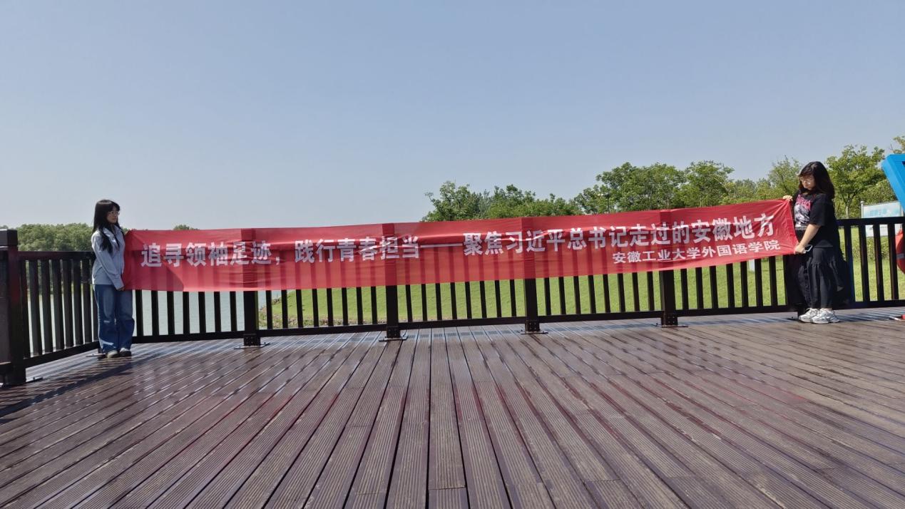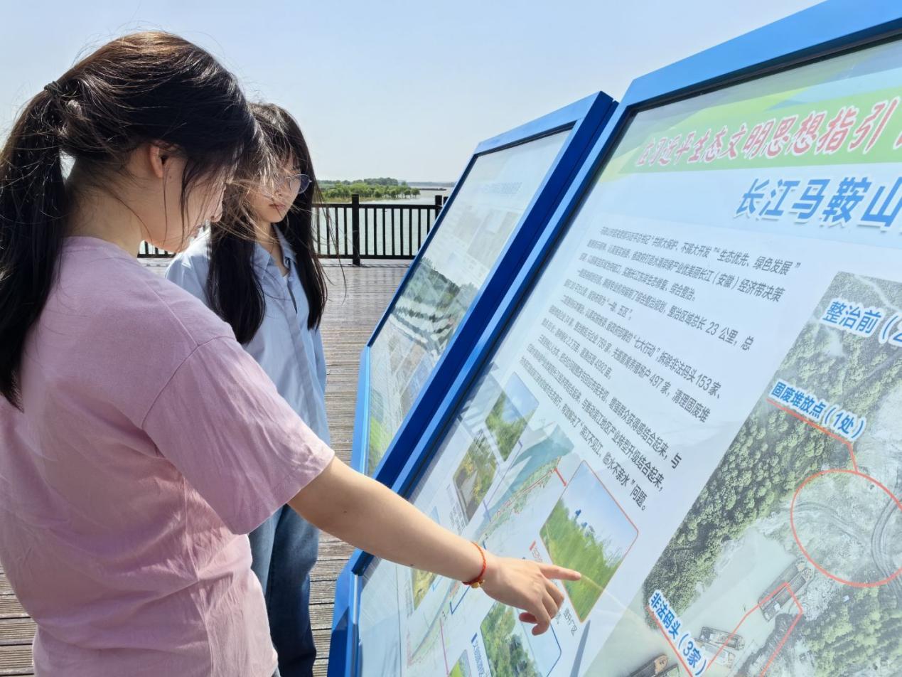2020年8月19日上午,习近平总书记亲临薛家洼生态园考察调研,赋予马鞍山打造安徽的 “杭嘉湖”、长三角的 “白菜心” 新发展定位。总书记实地察看长江水势水情,详细了解岸线综合整治和生态环境保护修复、长江十年禁渔等工作落实情况。他强调,要增强爱护长江、保护长江的意识,实现“人民保护长江、长江造福人民” 的良性循环,早日重现“一江碧水向东流”的胜景。2025年6月16日,安徽工业大学外国语学院实践队沿着习近平总书记的足迹,深入薛家洼,踏上了一场探寻生态发展密码的时间之旅。