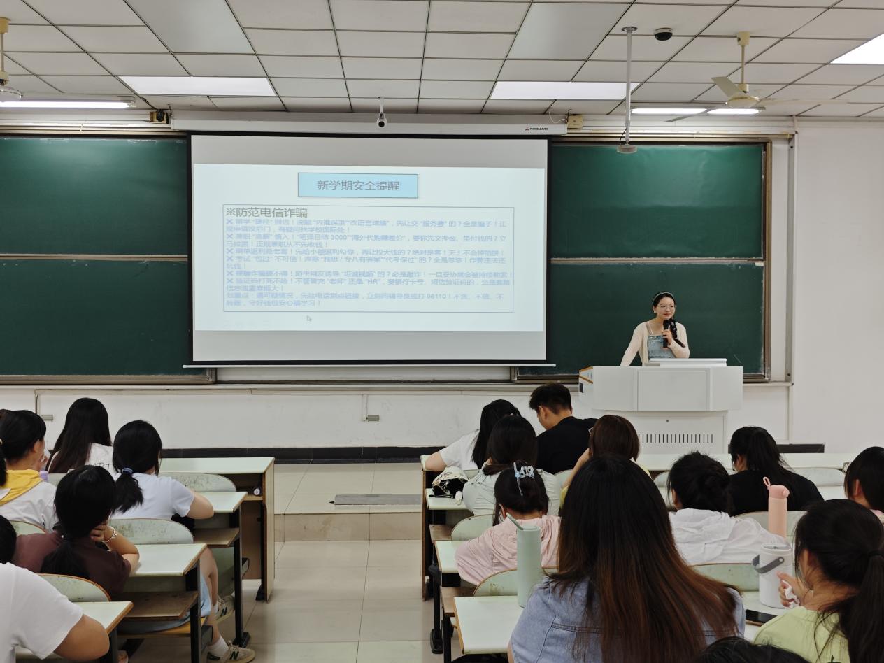 安全是学习与成长的保障,张庆芳在会上重申新学期纪律要求,涵盖请假制度、晚检制度、课堂考勤等,并特别强调“校内严禁骑行电动车”,保障校园出行安全;同时从消防安全、交通安全、网络安全、防范电信诈骗等方面进行安全提醒,此外,针对可能出现的精神苦闷、学业困惑、生活难题,张庆芳分享了合理宣泄、音乐疗法、自信心训练等心理调适方法,鼓励同学们以积极心态面对挑战。