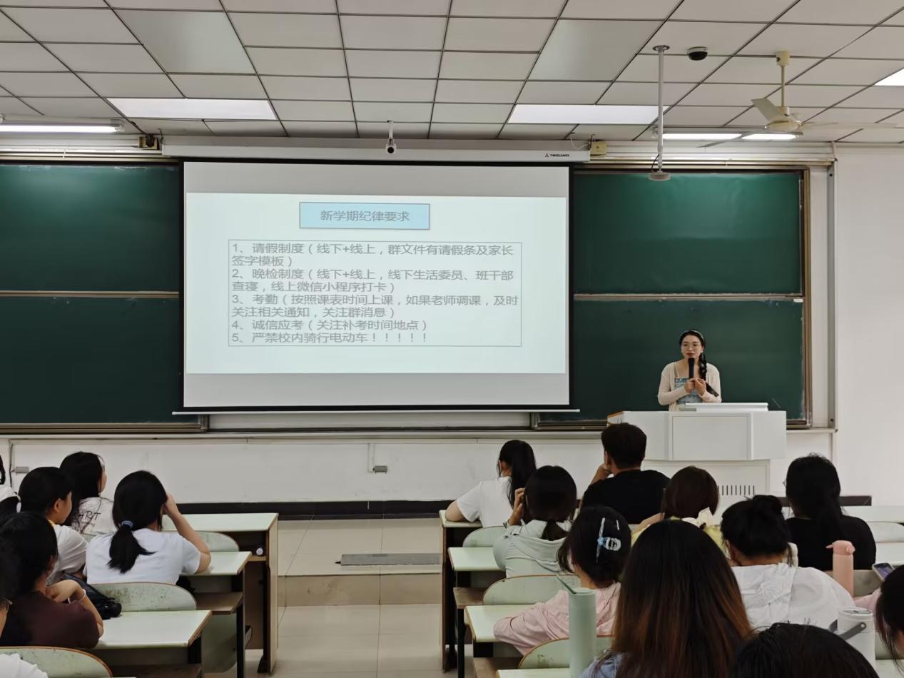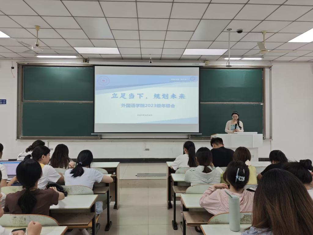 为帮助 2023 级学生明确学业目标、清晰职业方向,强化纪律意识与责任担当,9月8日下午,外国语学院在教三南301召开“立足当下,规划未来”主题年级会,会议由2023级辅导员张庆芳主持,全体2023级学生参会。