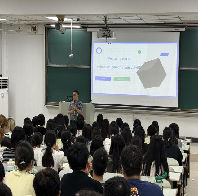 为帮助大一新生更好地了解专业特点、明确学习方向、树立远大目标,9月11日晚,外国语学院在教三南404教室开展新生“专业教育第一课”活动,外国语学院院长戴拥军,新生辅导员和全体2025级本科新生参加此次活动。活动由新生辅导员卜齐春主持。