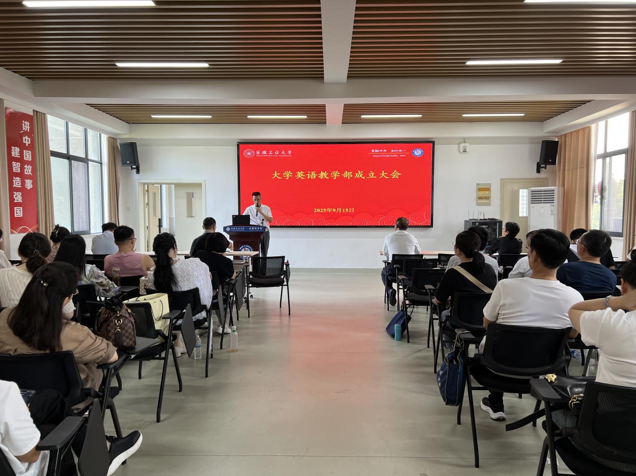 会上,学院党委书记王成勇宣读了《关于成立大学英语教学部及相关人事安排的通知》。戴拥军介绍了大学英语教学部内部分工与办公、教研场所安排,要求全体教师严格落实大学英语修读方案(2025版),规范教学行为,确保教学质量的统一与提升;要主动加强对外沟通协作,建立常态化沟通机制,广泛听取职能部门、各兄弟学院对大学英语教学的需求与建议,增强教学服务的针对性与有效性;要讲团结、重融合,以事业发展为重,凝聚发展合力,共同营造和谐奋进的工作氛围;要大力推进教学智能化转型,革新教学模式,赋能个性化学习与精准化评价,全面提升教学效率与现代化水平;要持续加强课程思政建设,引导学生树立正确的价值观,增强文化自信,用英语讲好中国故事。