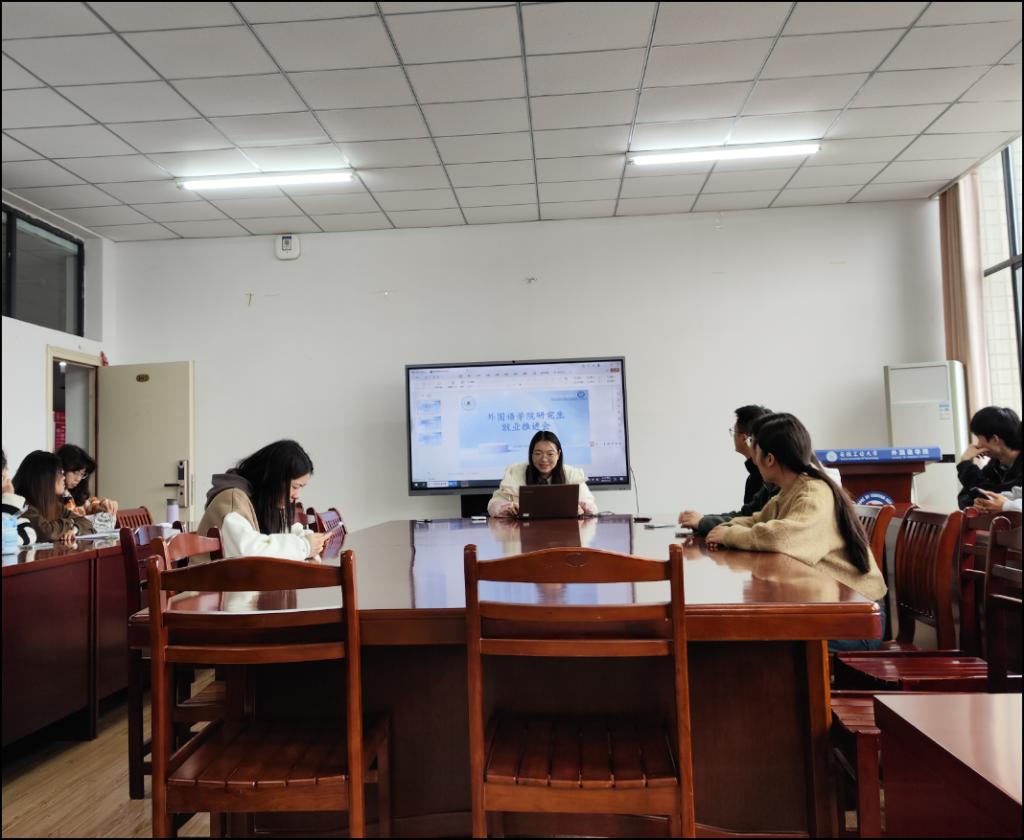 为深入贯彻学校关于就业工作的决策部署,紧抓秋季招聘黄金窗口,全力促进毕业生更加充分、更高质量就业,11月7日,外国语学院召开 2026 届研究生就业工作推进会,会议由2026届研究生毕业班辅导员张庆芳主持,全体 2026 届研究生参会。