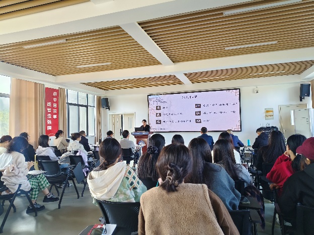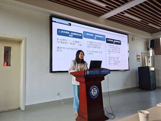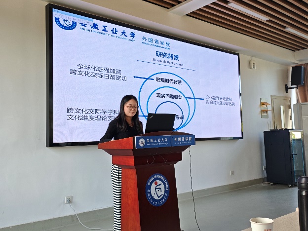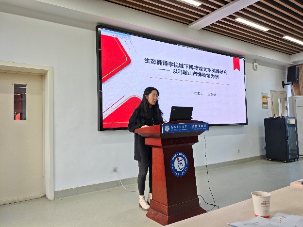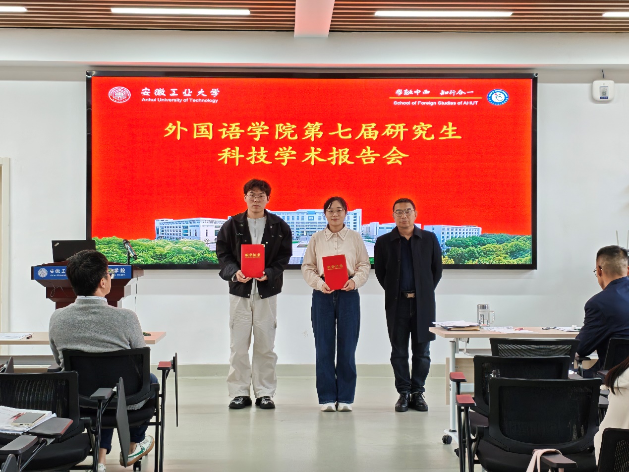 按抽签顺序,2025级研究生孟令怡、陈慧颖、李潇潇、2024级研究生陈思雨、胡雨朦、王宝龙、汪倩、尉梦寒、2023级研究生李献献分别作了主题为“中国神话在对外汉语文化教学中的应用研究”“中国传统节日文化融入初中英语教学的路径研究”“跨文化交际中中西方送礼文化差异”“语境顺应论视角下《慎子》的英译对比研究--以谭朴森和郝令喆译本为例”“多模态话语分析视角下渡江战役纪念馆英译研究”“英语立法文本中“as”的语用功能探析”“社交平台新闻机译的‘弱逻辑’陷阱与译者主体性重拾”“生态翻译学视域下博物馆文本英译研究——以马鞍山市博物馆为例”“《红楼梦》‘粥膳’饮食文化英译研究”的学术报告,各评委专家进行现场提问及评分,最终尉梦寒同学荣获一等奖并被推荐代表外国语学院参加学校第十六届研究生科技学术报告会。最后,评委专家们为各位参赛同学现场颁发了获奖证书。