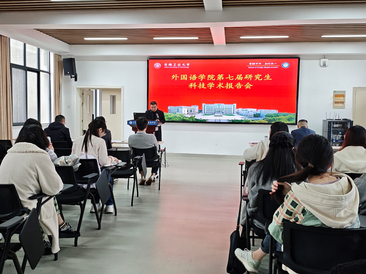 为迎接安徽工业大学第十六届研究生科技学术报告会,11月9日下午,外国语学院在佳山校区教一401报告厅举行学院第七届研究生科技学术报告会。学院科研副院长马广利、评委专家及全体研究生参加了本次报告会。