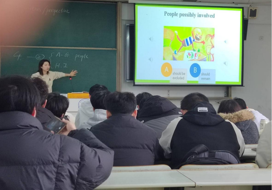 3月27日上午八点整,在教北210教室,大学英语教学部的盛绘老师呈现了一堂别开生面的《学术英语听说》课程思政公开课。课程以“多视角看待问题”为核心,通过层层递进的逻辑引导与充满思辨的课堂互动,将思政教育润物无声地融入英语教学,展现了课程思政的独特魅力。