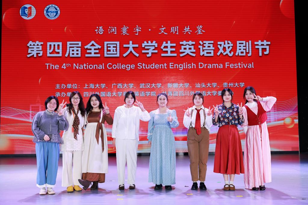 2026年4月12日,第四届全国大学生英语戏剧节决赛在四川外国语大学圆满落幕。外国语学院携参赛剧目《卢纳萨之舞》(Dancing at Lughnasa),在与12支戏剧团队的激烈角逐中斩获团体二等奖,充分展现了外院学子扎实的英语基本功、出色的表演能力与深厚的跨文化素养。