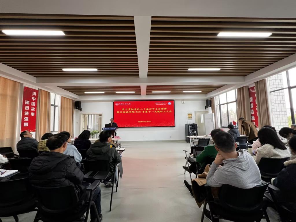 12月1日下午,外国语学院召开2025年第十一次教职工大会,全院教职员工参加会议。会议由学院党委书记王成勇主持。