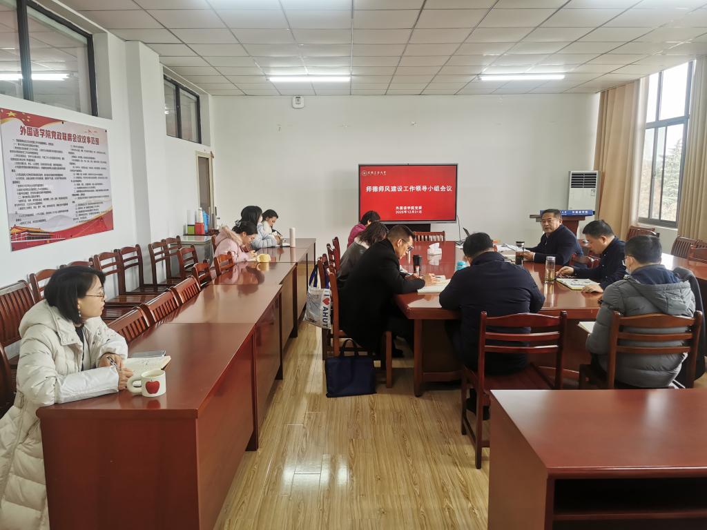 12月31日上午,外国语学院召开师德师风建设工作领导小组会议,学院师德师风建设工作领导小组成员参会。会议由学院党委书记、师德师风建设工作领导小组组长王成勇主持。