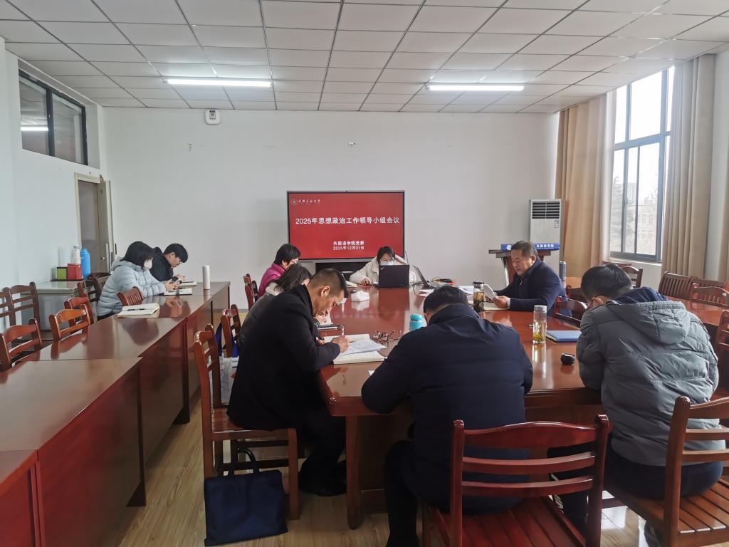 12月31日上午,外国语学院召开2025年思想政治工作领导小组会议,学院思想政治工作领导小组成员参会。会议由学院党委书记、思想政治工作领导小组组长王成勇主持。
