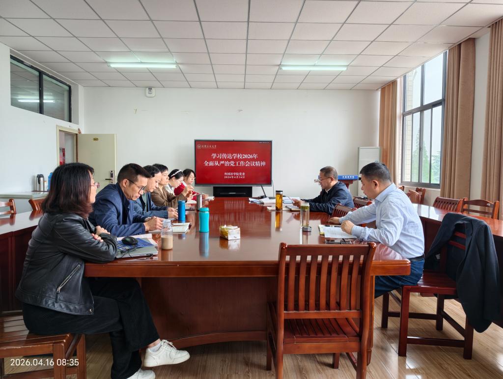 4月16日上午,外国语学院召开专题会议,学习传达学校2026年全面从严治党工作会议精神,部署学院全面从严治党重点任务。学院党政领导、党委委员、纪委委员、党支部书记及系部主任参加会议,会议由学院党委书记王成勇主持。