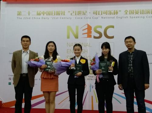 11月19日,第二十二届中国日报社“21世纪•可口可乐杯”全国英语演讲大赛(安徽赛区)决赛于合肥工业大学举行。来自省内15所高校24名选手汇聚一堂,尽显风采,争夺晋级全国决赛的名额。经过激烈角逐,我校外国语学院2014级闫心蕊同学荣获季军,2014级陈之童同学荣获三等奖,其中闫心蕊将于2017年代表安徽参加全国大赛,为我校首次参加此项赛事喜添开门红!