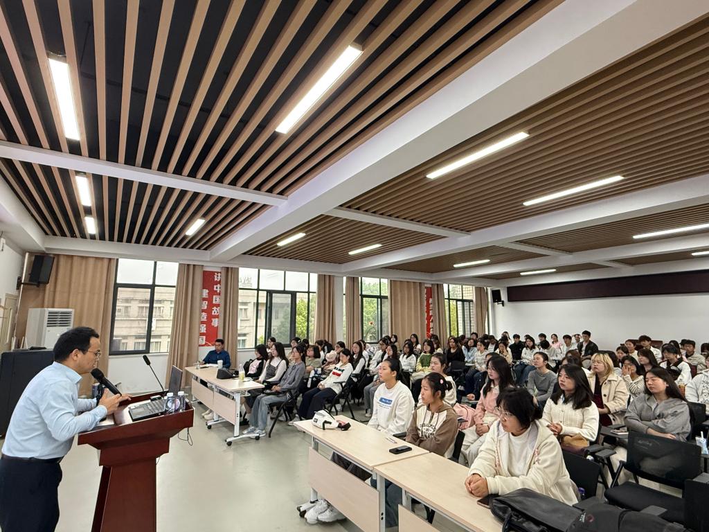 讲座现场气氛热烈,王前龙结合自身经历,从母校求学、初入职场到成长为行业骨干的奋斗历程,以生动详实的案例阐述了尽早进行职业规划的重要性。他围绕“如何认识自我与专业”“大学期间应储备哪些核心能力”“英语+”等关键议题,为新生们提供了系统而实用的指导。