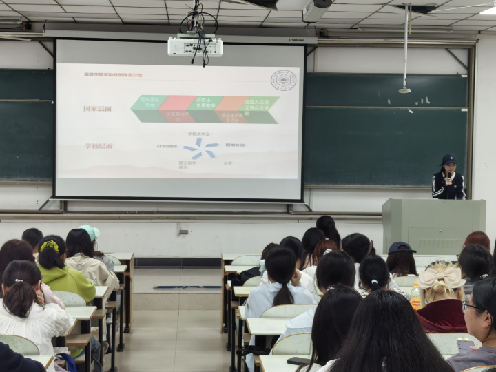 宣讲会上,卫文丽系统梳理了校内、社会及国家三个层面的奖助学金类型与区别,重点围绕各类奖助学金的申请条件、办理流程及时间节点等内容展开说明,帮助新生全面掌握政策信息,为有需要的同学提供了清晰有效的指引。