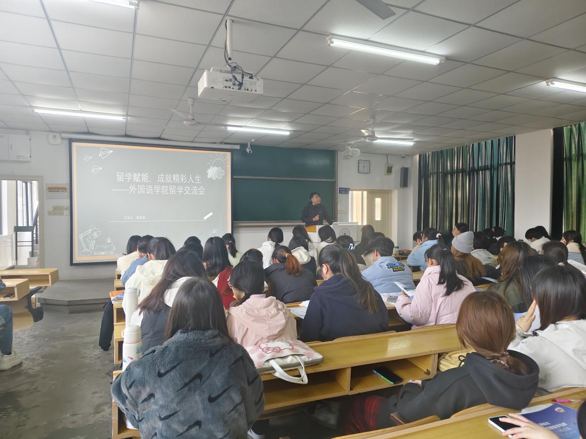 为进一步拓宽学生就业视野,精准对接我院学生留学规划需求,切实推进学院就业工作提质增效,近日,外国语学院以“留学赋能,成就精彩人生”为主题举办留学宣讲交流活动。外国语学院特别邀请我校2016届校友东方教育CEO杨信、雅思讲师相雨彬开展留学指导、学院2023级辅导员张庆芳以及各年级百余名学生参加此次活动。