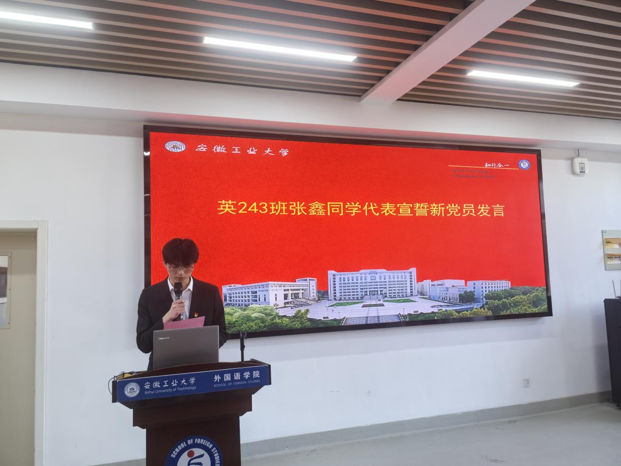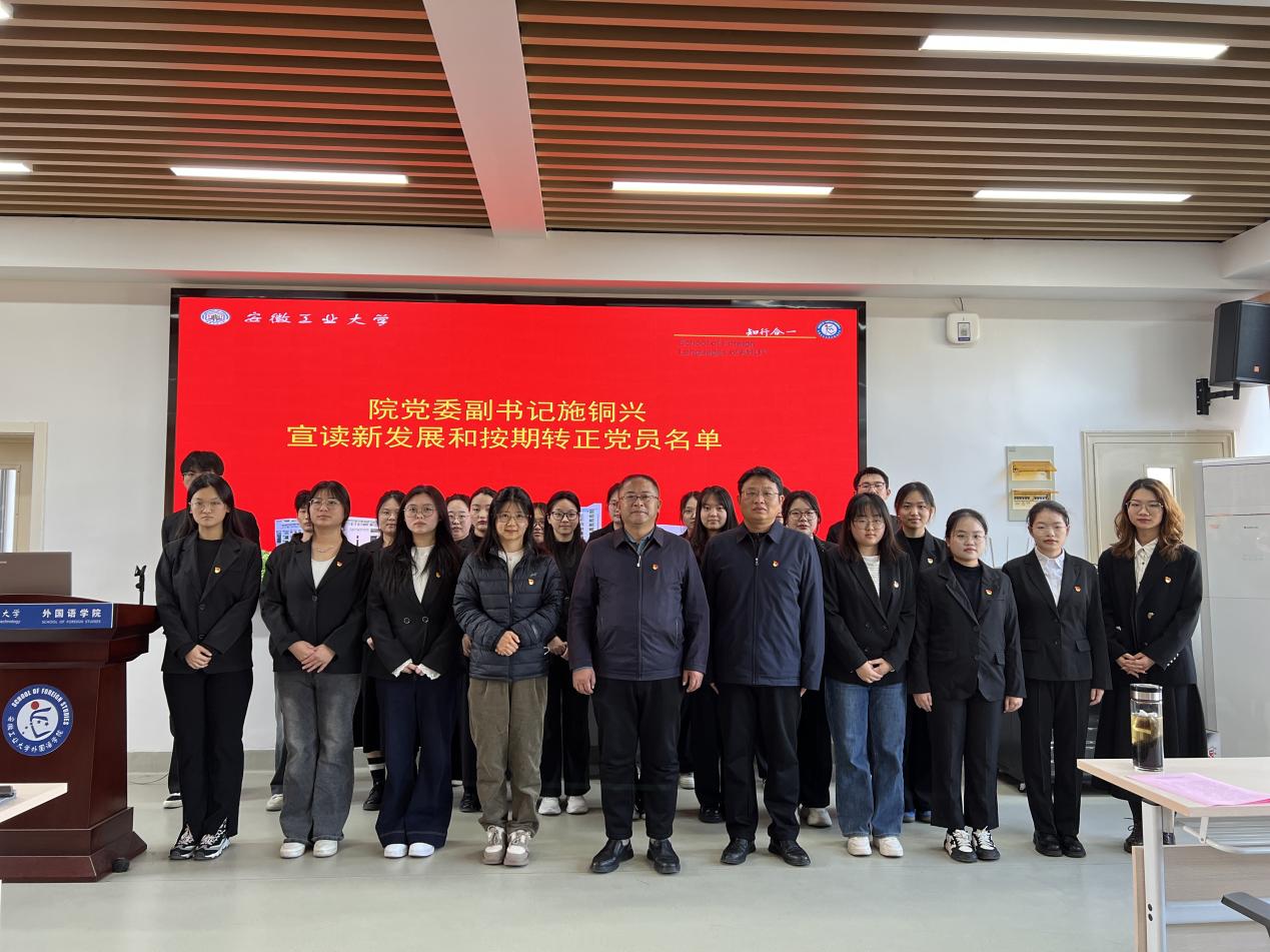 12月9日下午,外国语学院在佳山校区教一401会议室举行新党员入党宣誓暨老党员重温入党誓词仪式。学院党委书记王成勇、党委副书记施铜兴,各学生党支部书记及全体学生党员参加活动。