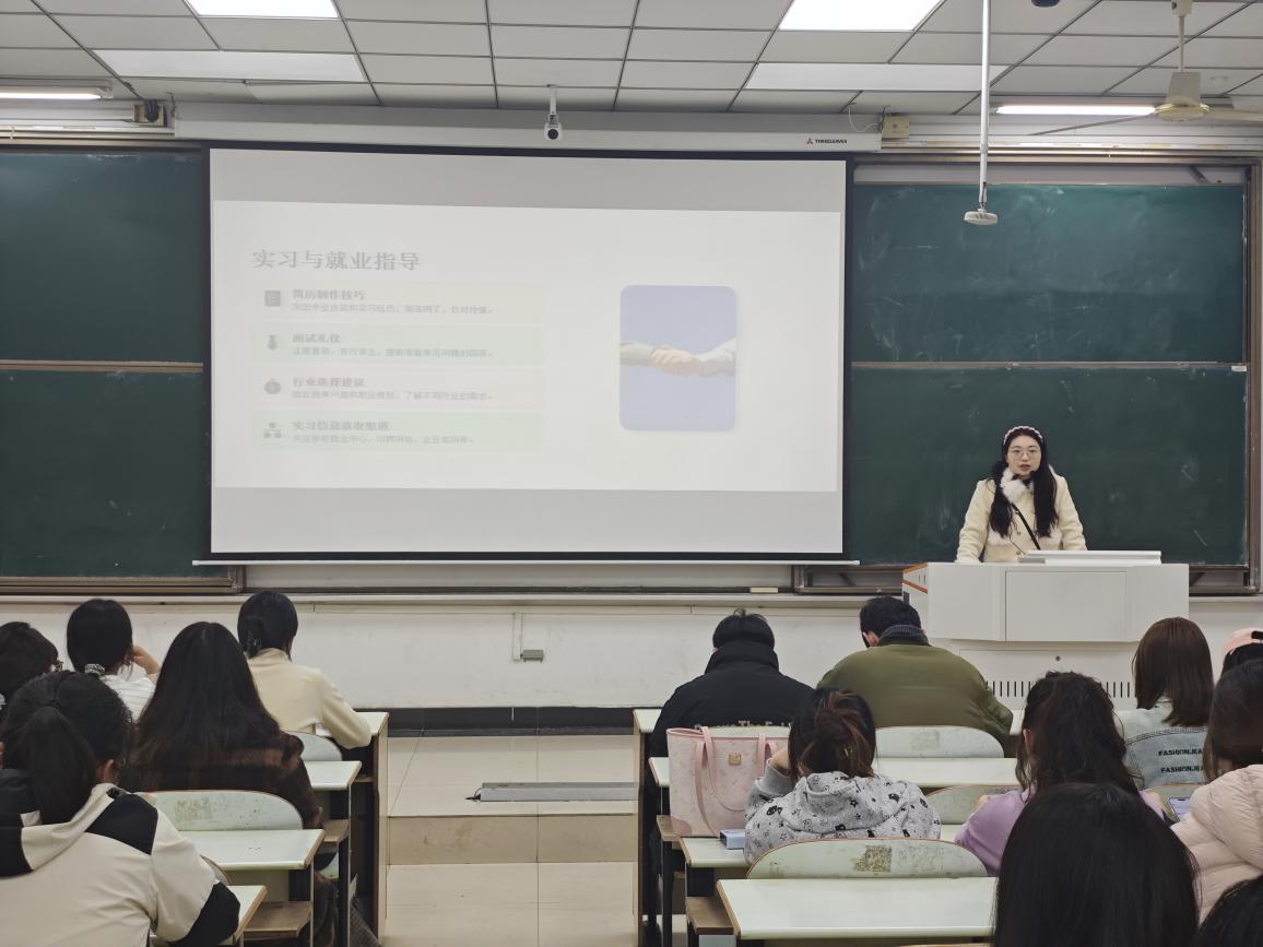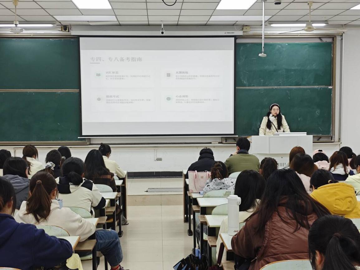 会议围绕学业规划、安全教育、纪律管理及宿舍文化建设四大板块展开,为同学们下一阶段学习生活指明方向。学业规划上,张庆芳针对专四补考、专八备考提出系统方案,强调每日词汇积累、真题演练;同时开展实习就业与考研深造指导,从简历制作、面试礼仪、院校选择、复习计划等方面给出实用建议。会上,张庆芳通报了第二课堂学分完成情况,志愿公益、实践实习、创新创业学分达标率偏低,她要求同学们积极参加二课活动,尽快补齐短板。