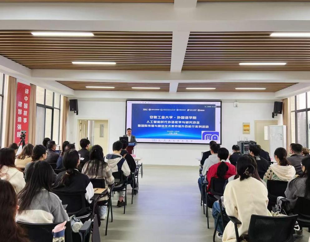 2025年11月8日上午,由安徽工业大学外国语学院主办的“人工智能时代外语教学与研究沙龙暨国际传播与翻译技术素养提升百校行系列活动”成功举办。本次活动在中国翻译协会、中国外文局翻译院及安徽省外国语言文学学会翻译教学研究分会的共同指导下,得到了北京博硕星睿教育科技有限公司与福州译国译民集团有限公司的技术支持,通过多平台直播,吸引了线上线下超5000多名师生与业界同仁的积极参与。