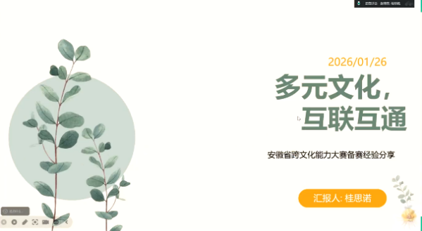 2026年1月26日晚,外国语学院英语演讲与辩论俱乐部系列讲座如期在线上举行。本次讲座以“2026跨文化能力大赛、短视频大赛动向与能力续航”为主题,旨在为学生备赛提供专业指导与实践经验。讲座由赵萌菲老师主持,俱乐部全体成员参加。