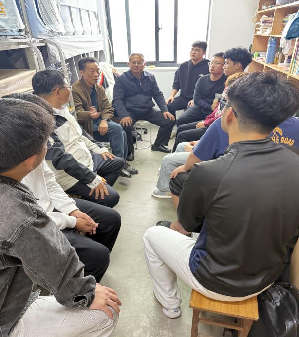 为帮助2025级新生顺利适应大学生活、明晰学业规划、树立发展目标,11月7日下午,外国语学院关心下一代工作委员会(以下简称“关工委”)深入学生宿舍,与新生们展开了一场温馨亲切的座谈交流。学院党委书记、关工委主任王成勇,学院关工委副主任洪流、施铜兴和新生辅导员卜齐春参加座谈交流。